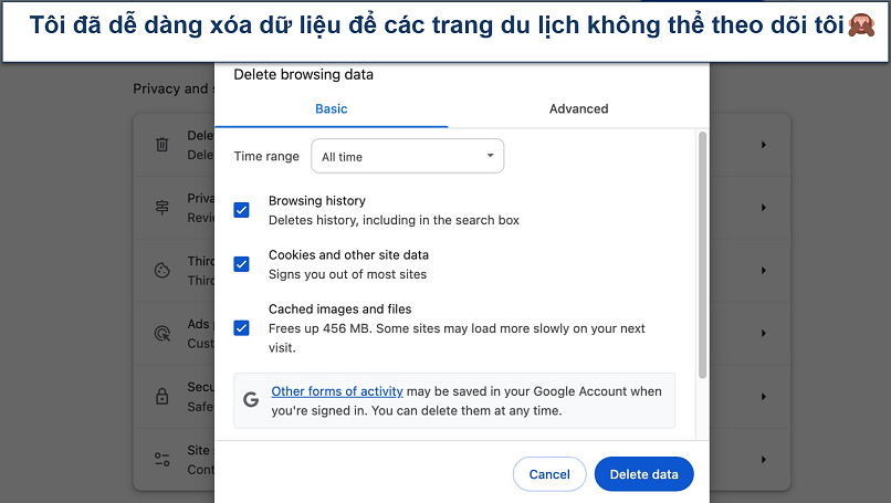 2. Xóa cookie và dùng chế độ Ẩn danh