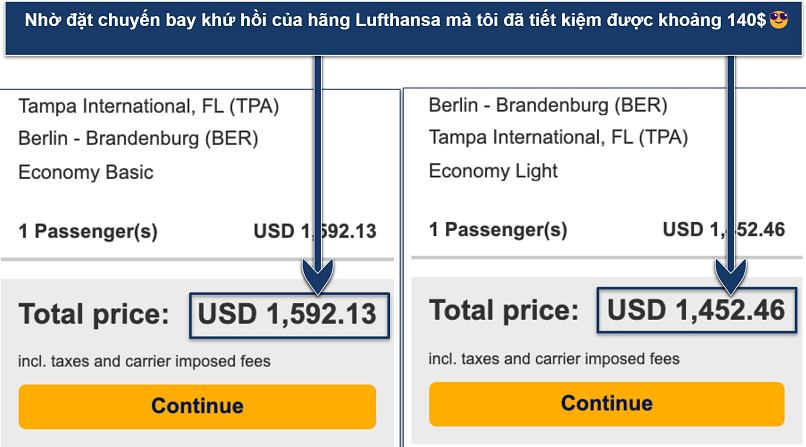 VPN giúp bạn tìm thấy các giao dịch chuyến bay tốt hơn bằng cách kết nối bạn với một máy chủ bảo mật ở khu vực khác, nơi mà giá có thể khác biệt. Những chiến lược đặt vé truyền thống ít phức tạp hơn về mặt kỹ thuật, nhưng chúng cũng có thể giúp bạn tiết kiệm tối đa. Đây là hướng dẫn toàn diện của tôi kết hợp cả hai phương pháp để giúp bạn mua được giá vé tốt nhất có thể: