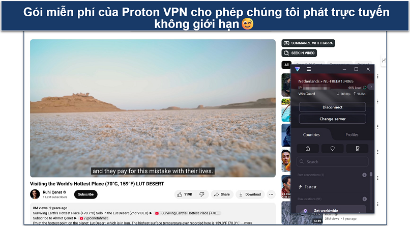 Các bài kiểm tra tốc độ của chúng tôi cho thấy Proton VPN là tùy chọn miễn phí nhanh nhất hiện nay. Khi bạn kết nối với các máy chủ ở gần, tốc độ của nó giảm thấp nhất so với tất cả những VPN miễn phí khác mà chúng tôi đã thử nghiệm. Điều này cho phép chúng tôi phát trực tuyến ở chế độ HD và UHD mà không bị chậm.